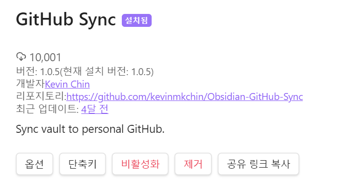 나. 커뮤니티프러그인에서 'github sync' 검색